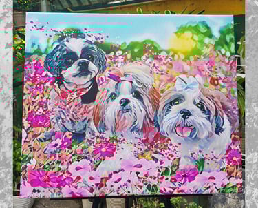 A customized portrait based on your preferences. It can feature your pet(s), humans, or a combination of both!