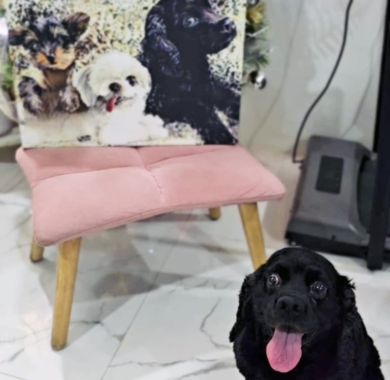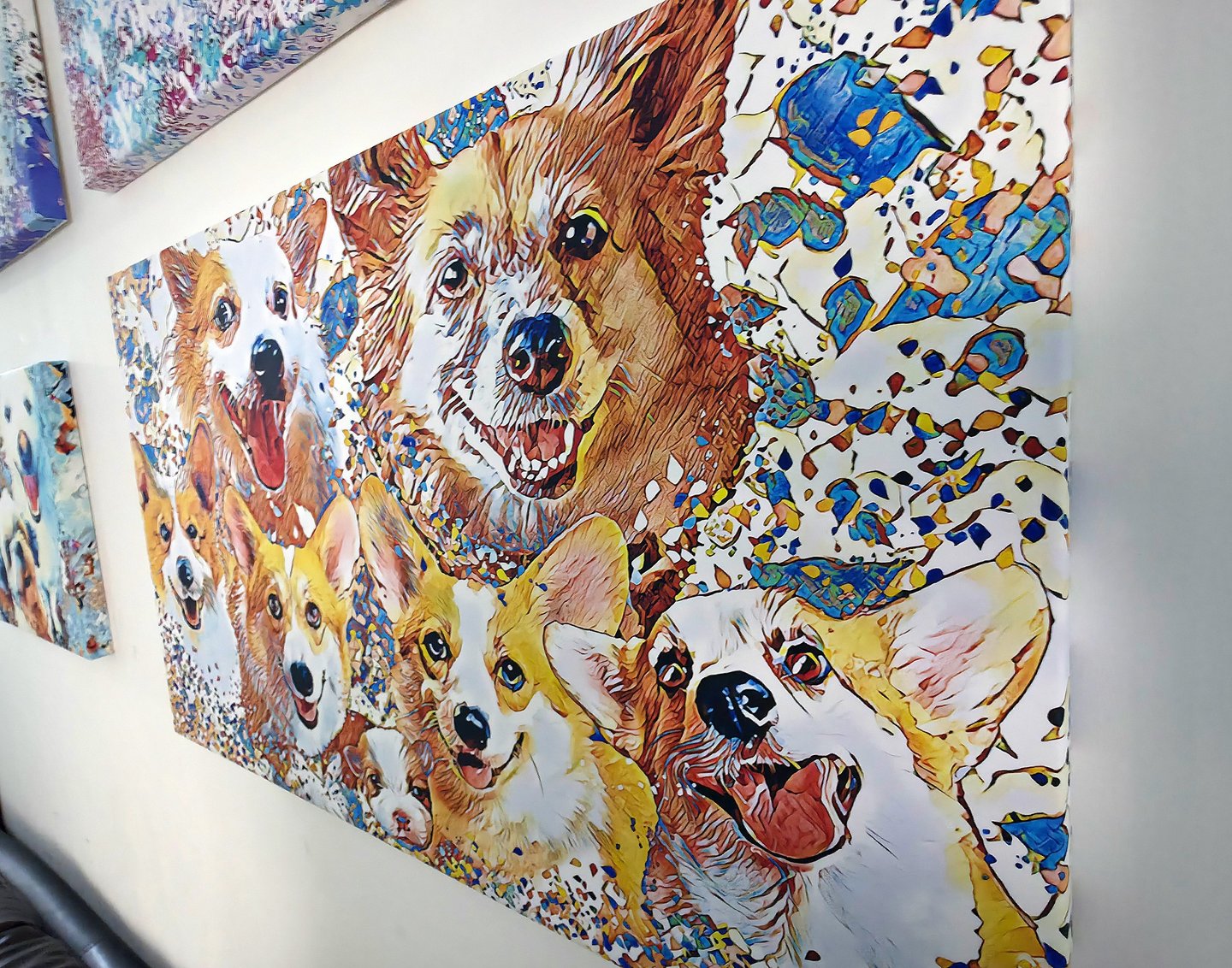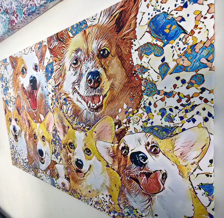 Explore our vibrant custom pet portraits and joyful creations.
